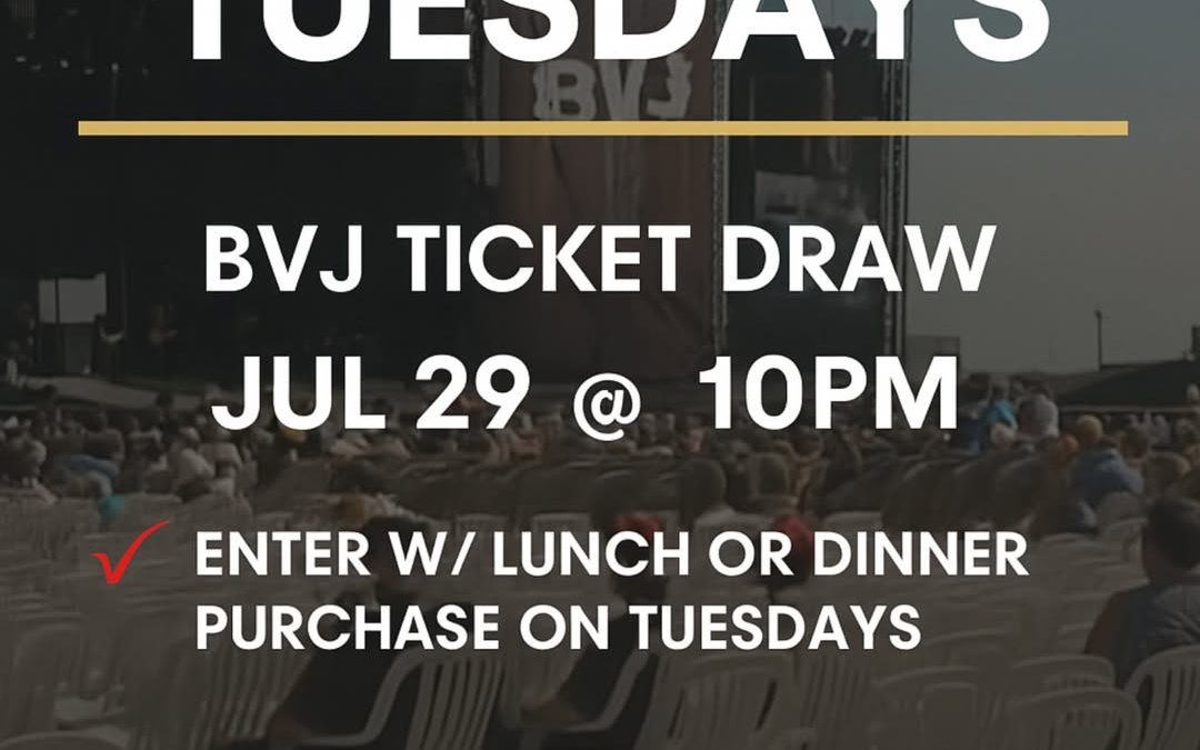 TICKET TUESDAYS = BVJ ENTRY It’s that easy: Eat lunch or dinner on a Tuesday Get entered to win B…