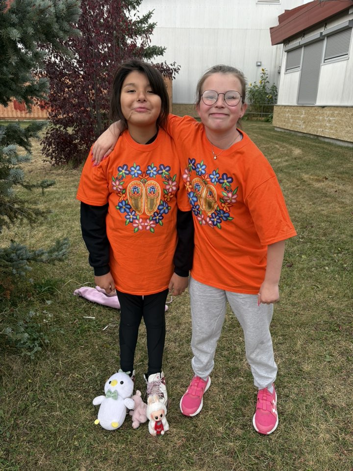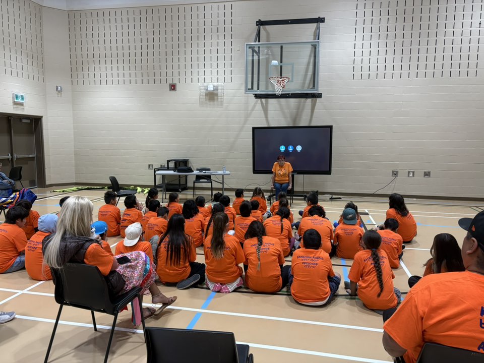 Today we wear orange shirts to remember, and promote awareness about residential schools in Canada. We honor all survivors, and those who were lost. We had an assembly in the morning in which Gloria Lightning explained why we wear orange shirts and the history behind residential schools. Our awasisak will continue to read books and do class projects to learn why orange shirt day is so important. We will share more pictures throughout the day.