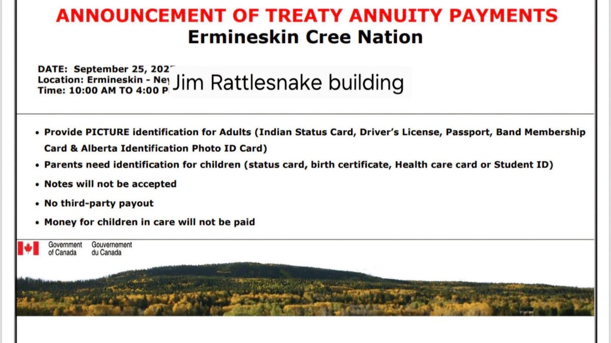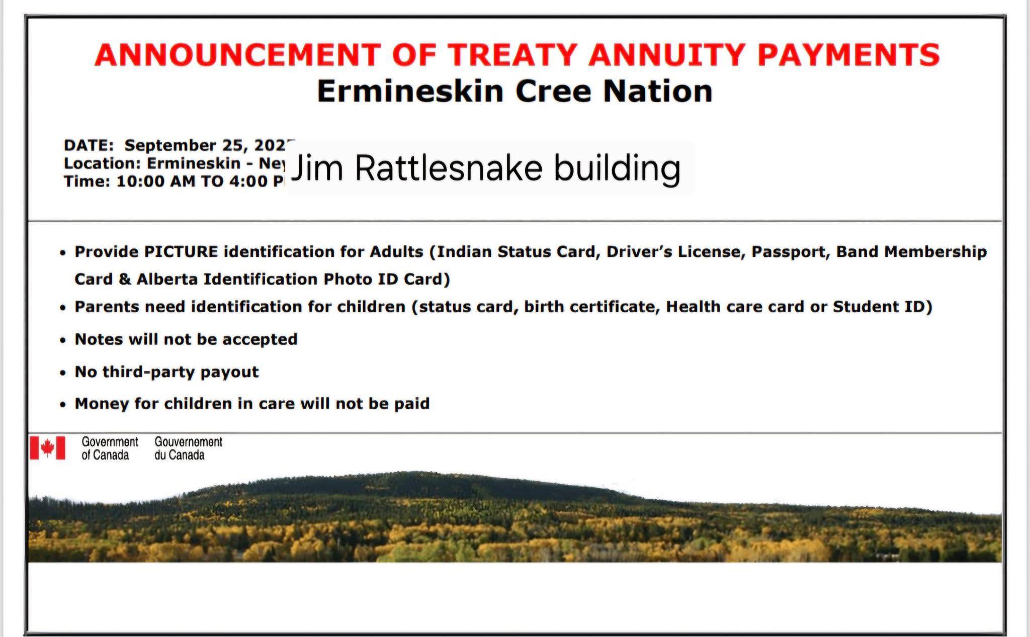 Treaty Annuity PAYMENTS location is at the JIM RATTLESNAKE BUILDING.