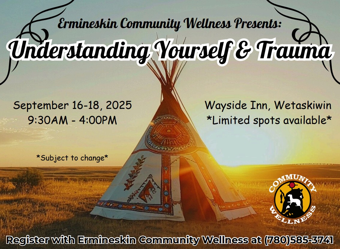 Published by Erimineskin at August 11, 2025 Categories Facebook Tags Understanding Yourself and Trauma September 16-18, 2025 9:30AM – 4:00PM Source Share0 Related postsApril 19, 2026Huge congratulations to the Sr Men Neyaskweyahk team on taking 1st place in the provincial tournamen…Read moreApril 19, 2026Champion Sunday – Dylan and Sonny for Neyaskweyahk and Wynter for his spring team, Edmonton 67sRead moreApril 19, 2026GOOD MORNING!!! The NHAC TV Crew setting up for the day of live broadcasting. Watch Senior Native Pr…Read moreApril 19, 2026Championship Sunday! Neyaskweyahk Sr’s @8:00am Nipisihkopahk Ladies@9:15am Nipisihkopahk Hawks@10:3…Read more
