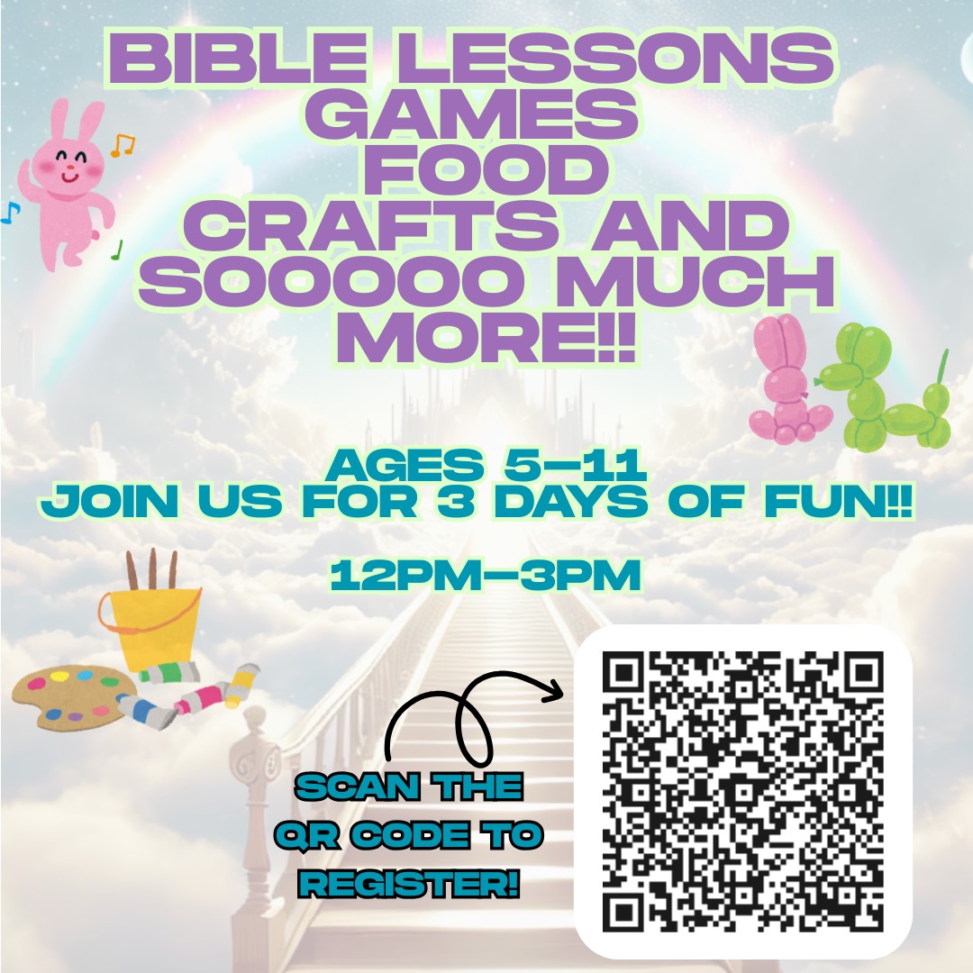 WE ARE SOOOOO EXCITED!!! JULY 21 -23 Three afternoons packed FULL of fun for ages 5-11. Sign up t…
