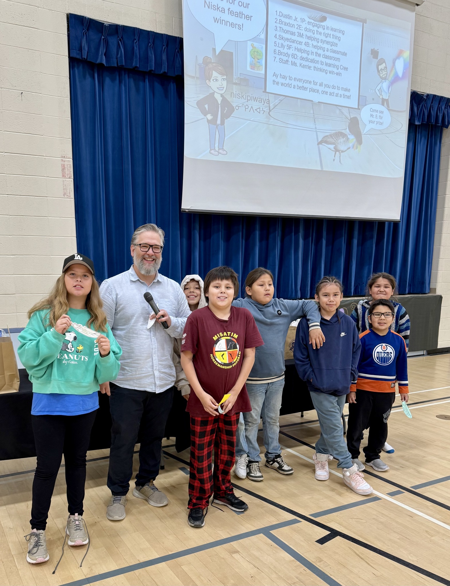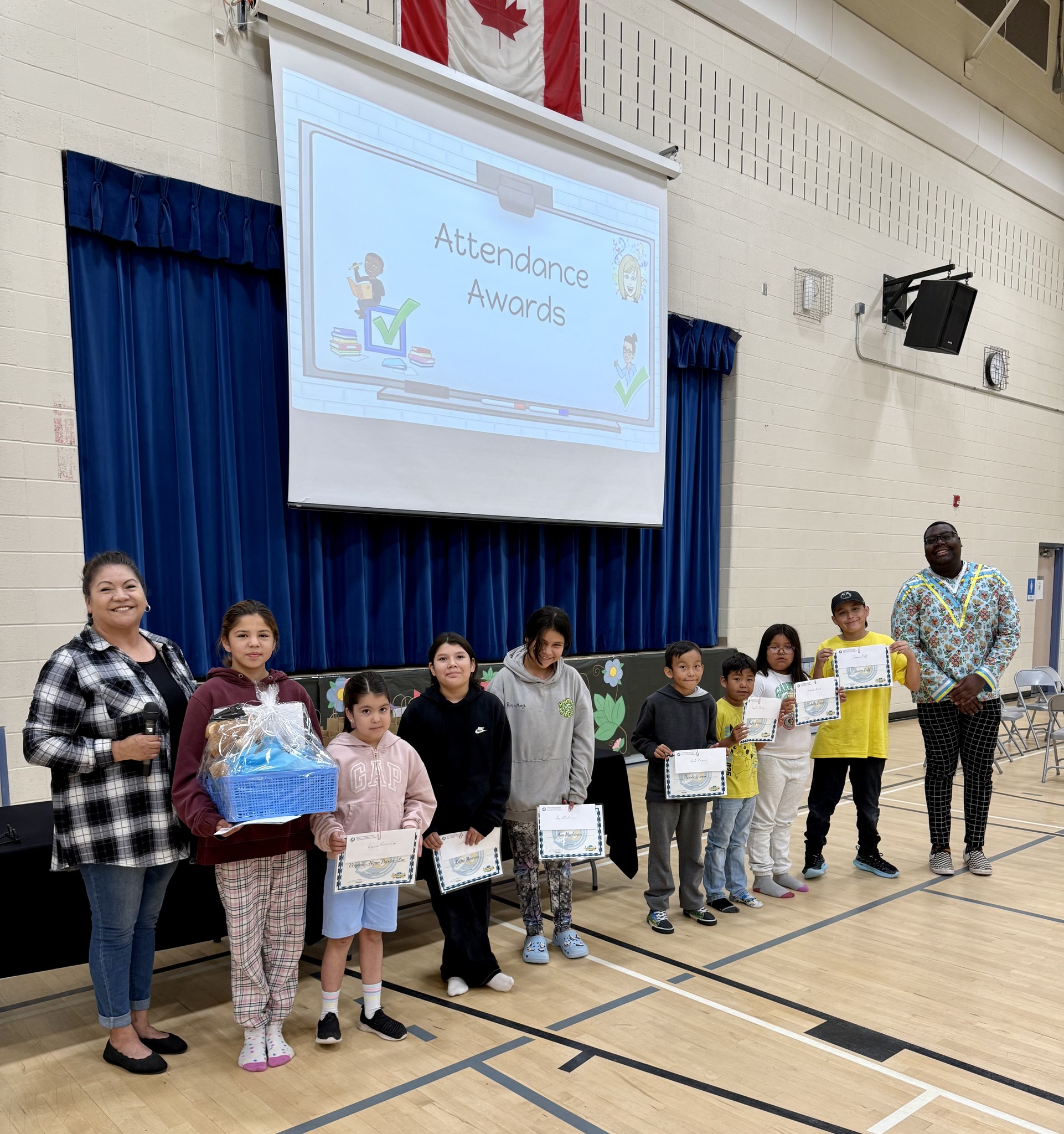 We had our Year-End Assembly anohc, where we gave out Niska Feather Awards, Grade 6 Cavity-Free Awards, Year-long Attendance Awards, a special Year-Long 100% Attendance Award to one student, Nehiyawewin Awards, where students received a Ribbon Shirt or Skirt, and finally, our Attendance Cart Awards for May and June. It was a wonderful celebration! miywâsin!