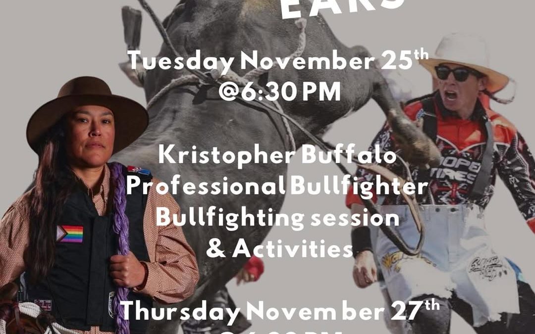 We have Kristopher Buffalo joining us for our classes in the dirt. He will be doing Bullfighting sessions and activities.