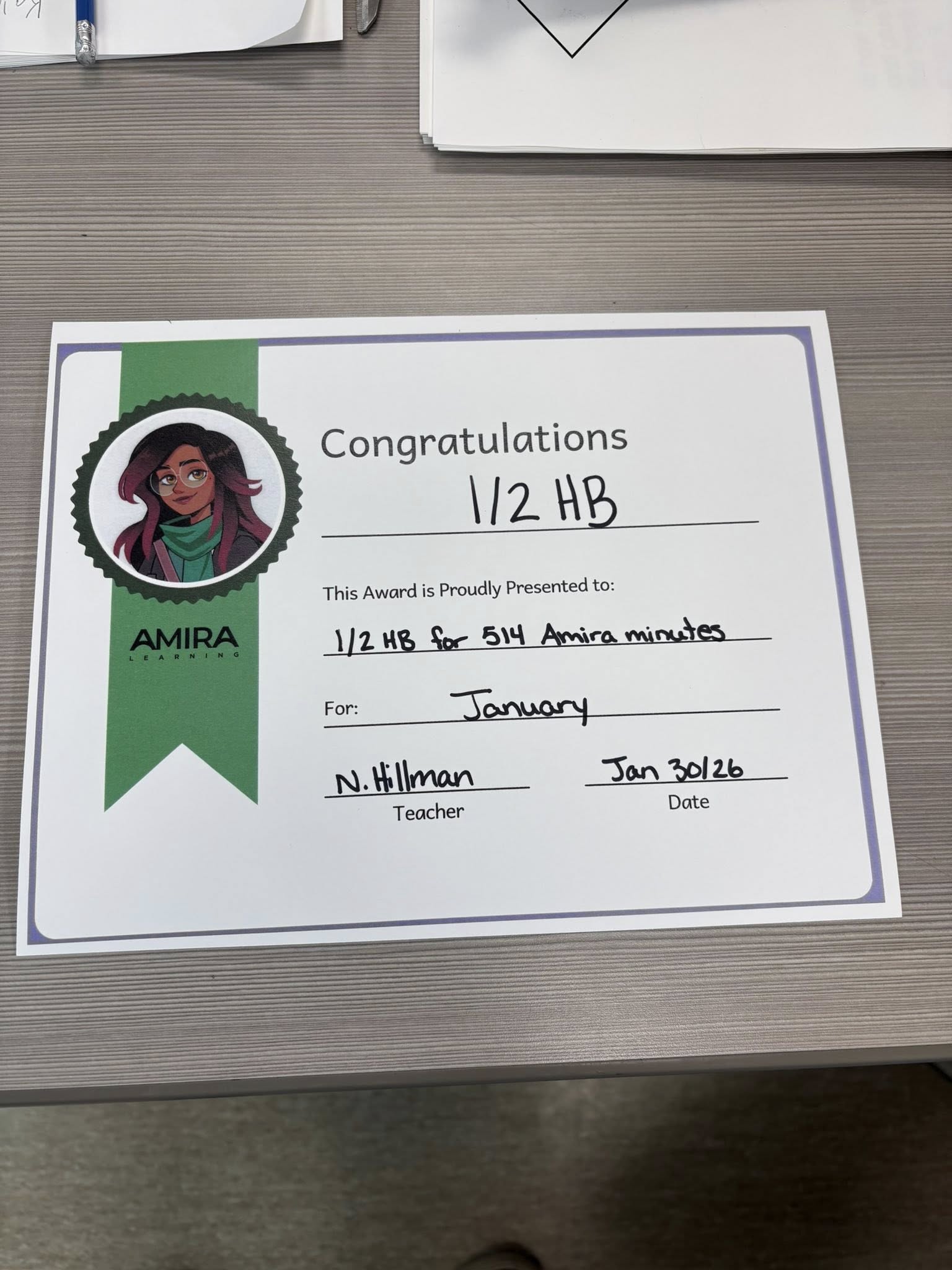 We would like to congratulate some of our awesome readers in the school. Studnets in Mrs HB’s grade 1/2 class read 514 minutes for the month of January using the Amira program. Kacee Rowan Johnson read the most minutes in grade 1/2. We would also like to congratulate Liam Brown and Aniyas Rowan for reading 10 books at home for their home reading program. Great job students we are very proud of you!!